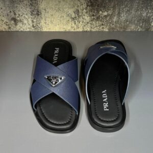 HERMES Baltic Blue Saffiano Leather Sandals for Men