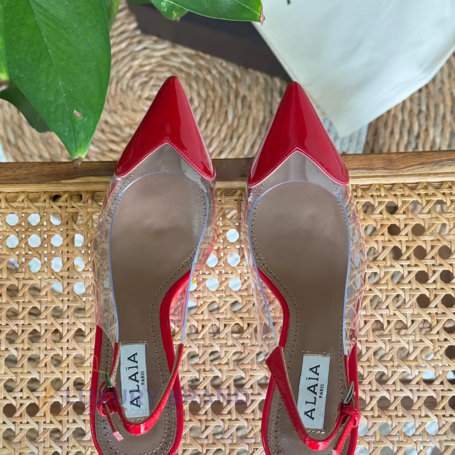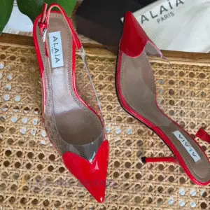 The iconic ALAIA Cœur Slingback Pump. Defined by its sculptural heart-shaped heel, this masterpiece blends avant-garde design with timeless elegance. Crafted in supple leather with a signature laser-cut detail, it’s a definitive statement in luxury footwear.