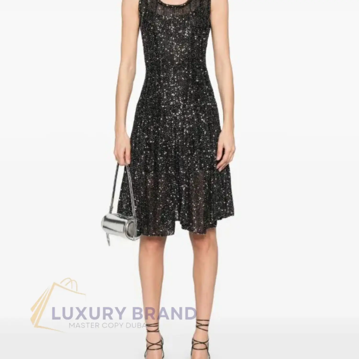 Embrace the spotlight in the ALAlA Rachel Roy Sleeveless Sequin Flare Dress, a masterpiece designed to turn every occasion into a red-carpet event. This dress is a symphony of luxury and meticulous craftsmanship, starting with its exquisite all-over sequin embroidery that catches the light with every graceful movement.