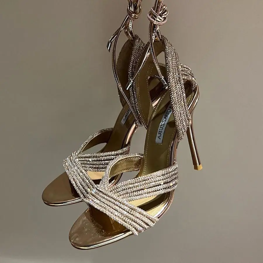 • Dazzling Crystal Straps: The defining feature—a breathtaking arrangement of premium, hand-set crystals that catch and reflect the light with every step. The straps elegantly encircle your foot and ankle, creating a custom, jewelry-like effect that is both secure and mesmerizing.