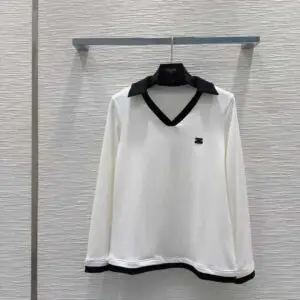 Embrace timeless Parisian elegance with our CELINE-Inspired V-Neck Collared Top. Meticulously crafted for the discerning wardrobe, this piece is the epitome of modern sophistication. The defining feature is its exquisite V-neckline, elegantly framed with a structured collar that adds a touch of refined polish, blurring the lines between casual and smart-casual attire.