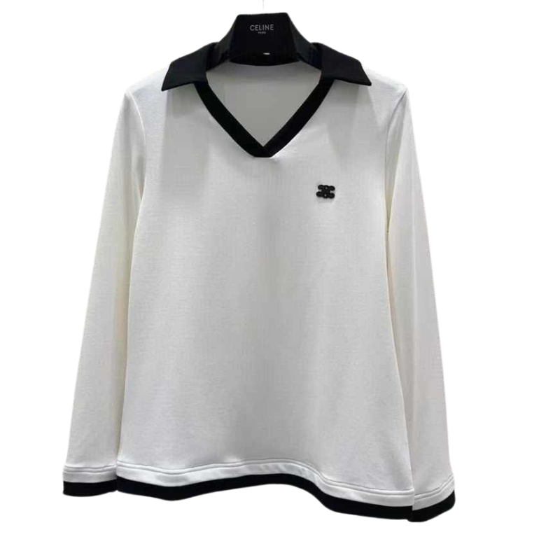 Embrace timeless Parisian elegance with our CELINE-Inspired V-Neck Collared Top. Meticulously crafted for the discerning wardrobe, this piece is the epitome of modern sophistication. The defining feature is its exquisite V-neckline, elegantly framed with a structured collar that adds a touch of refined polish, blurring the lines between casual and smart-casual attire.