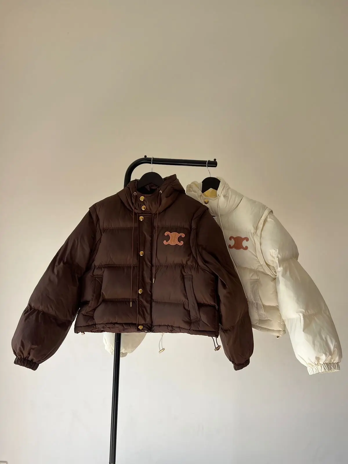 Stay effortlessly chic and warm with the CELINE Quilted Puffer Jacket, crafted from lightweight nylon for premium comfort and durability. This quilted masterpiece features a sleek mock neckline, front zipper closure, and two functional pockets, blending practicality with high fashion. Designed in a timeless chocolate brown hue, the jacket is double-lined for added warmth and finished with a puff-quilted texture for a modern aesthetic. Perfect for winter adventures or urban styling, this piece pairs seamlessly with your favorite winter essentials. Made from 100% polyester, it requires gentle hand washing and line drying to maintain its pristine condition. Elevate your cold-weather wardrobe with this iconic CELINE design