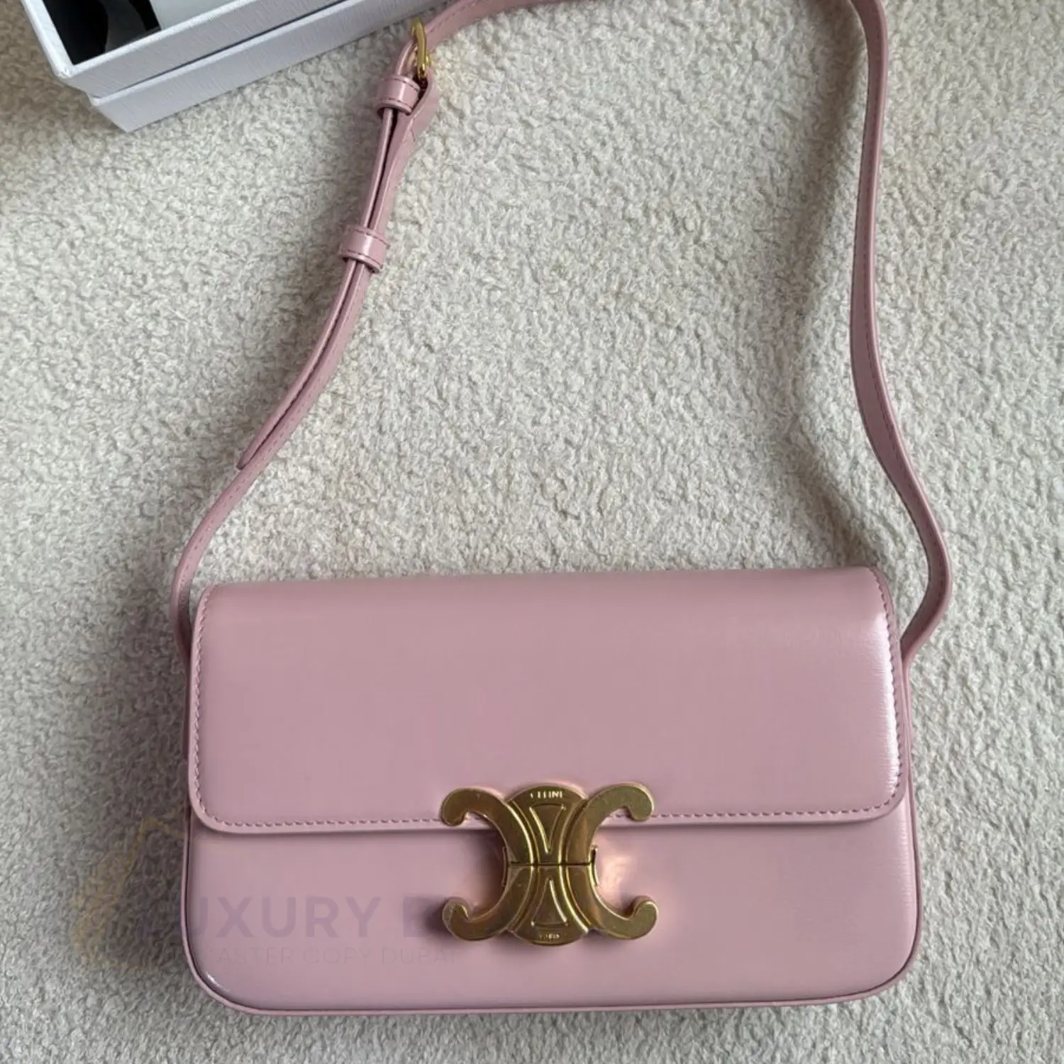 The ultimate replica of the iconic CELINE Triomphe Bag. Crafted in super master quality from premium grained leather with a precise gold Triomphe clasp. Features a suede interior and an adjustable strap for versatile, sophisticated wear.