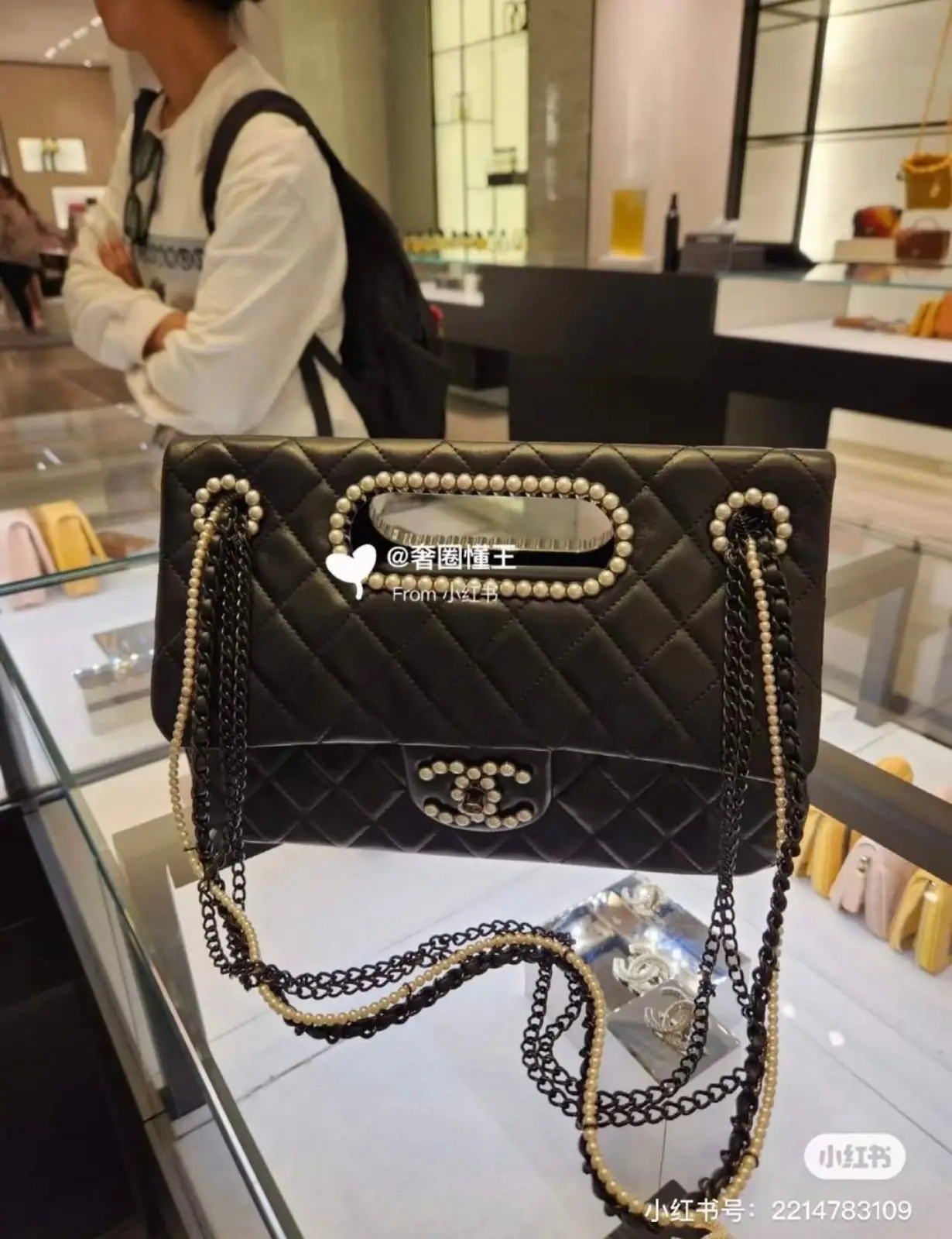Iconic Pearl & Chain Strap: The standout feature—a stunning strand of meticulously crafted pearls elegantly intertwined with the classic CHANEL chain, creating a strap that is both a handle and a piece of jewelry.