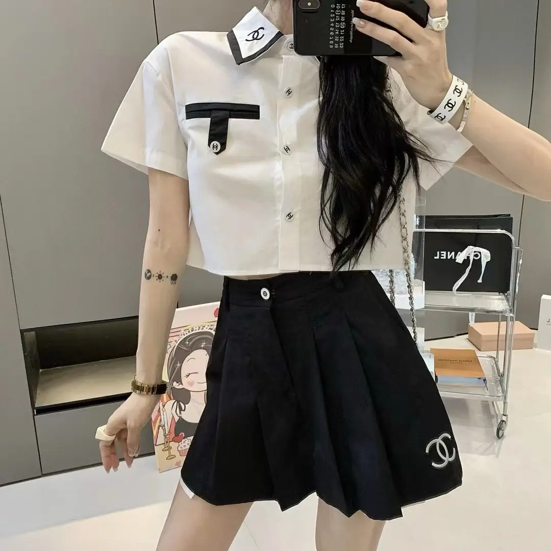 Embrace timeless Parisian elegance with our CHANEL Summer Skirt Set. This exquisite T-shirt and pleated skirt ensemble is the epitome of effortless luxury, designed for the modern woman who commands sophistication.