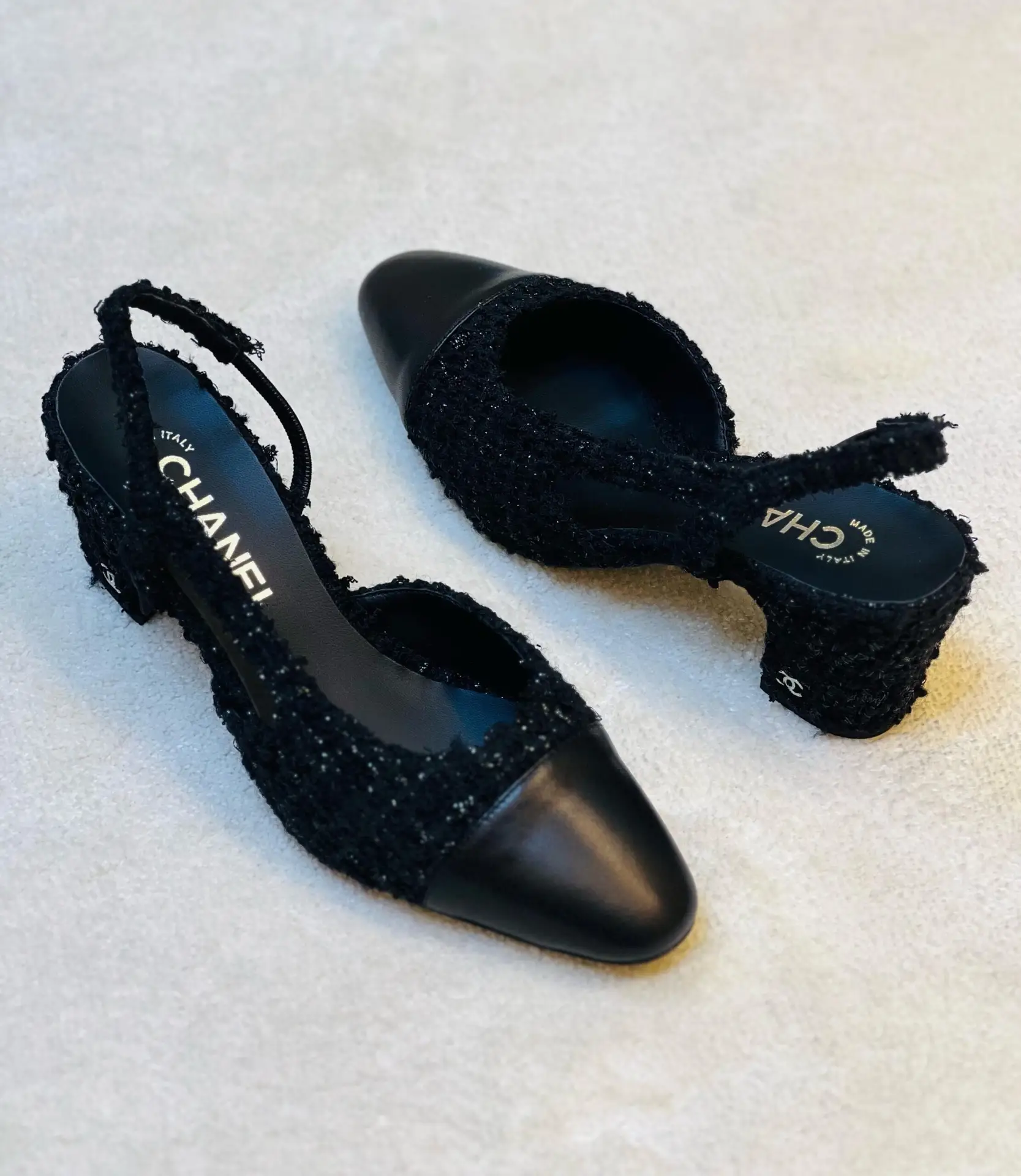 Constructed from the finest premium materials, the upper feels soft and supple to the touch, while the interior is fully lined for all-day comfort. The iconic CC logo is elegantly embroidered on the slingback strap, a subtle yet unmistakable mark of style.