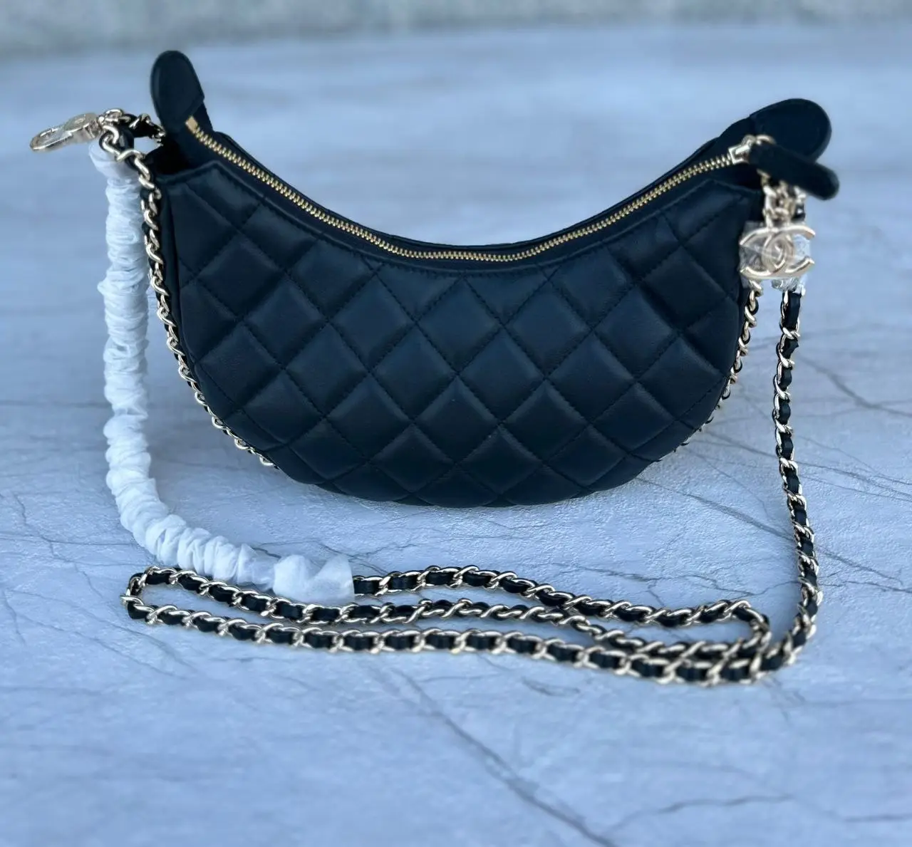 Design 23P Quilted Chain Around Hobo Bag Black Lambskin – Dubai Fashion LUX
