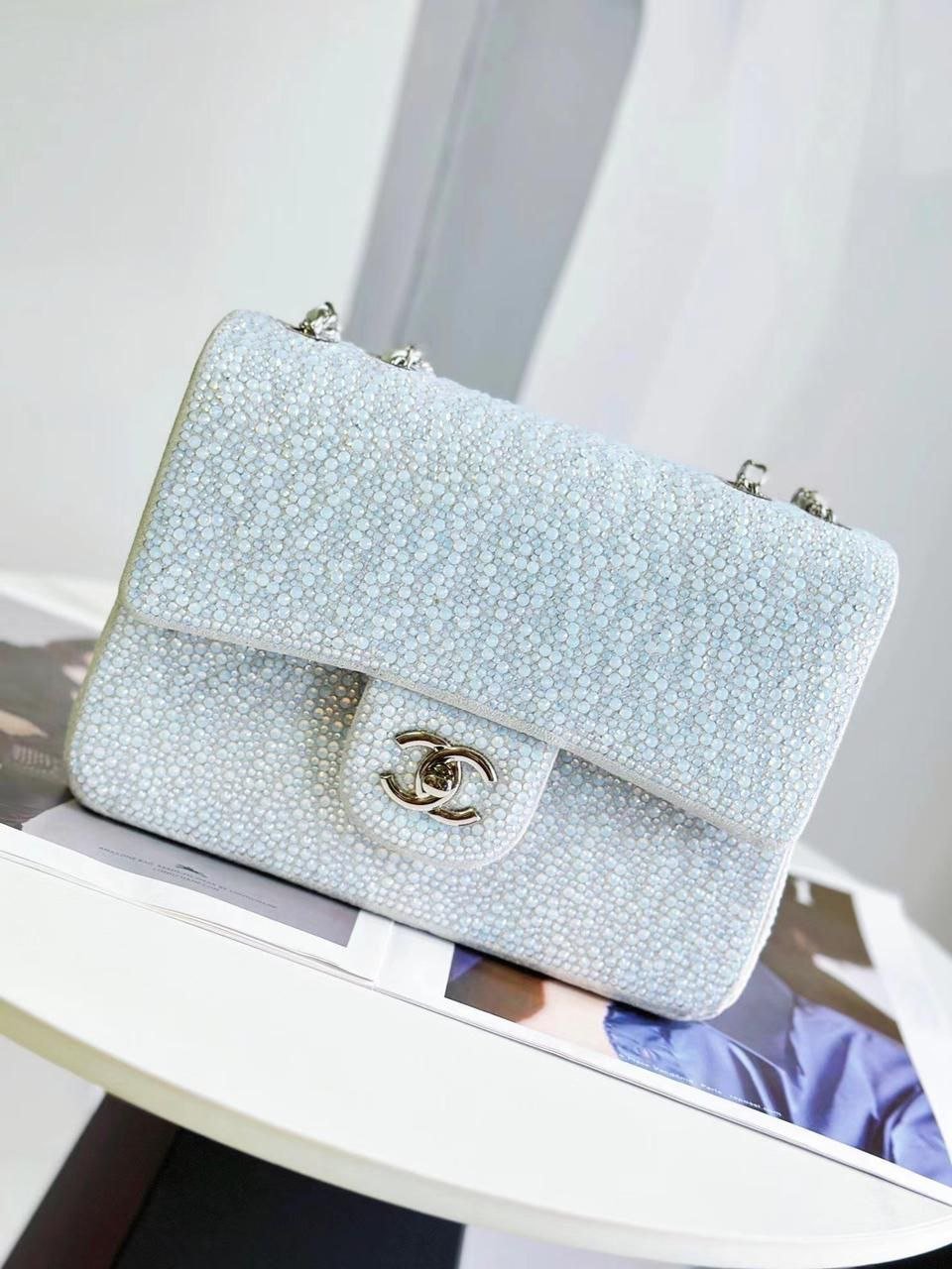 Design 9A Fashion luxury bespoke, Diamond CF bag designer satchel hand bag velvet material surface inlaid with a lot of different sizes of crystal pearls, two-letter logo -…