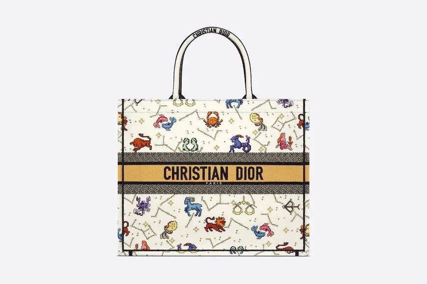 Design BAG NEW ARRIVAL – CD LARGE BOOK TOTE LATTE MULTICOLOR PIXEL ZODIAC EMBROIDERY 42CM for women – Dubai Fashion LUX