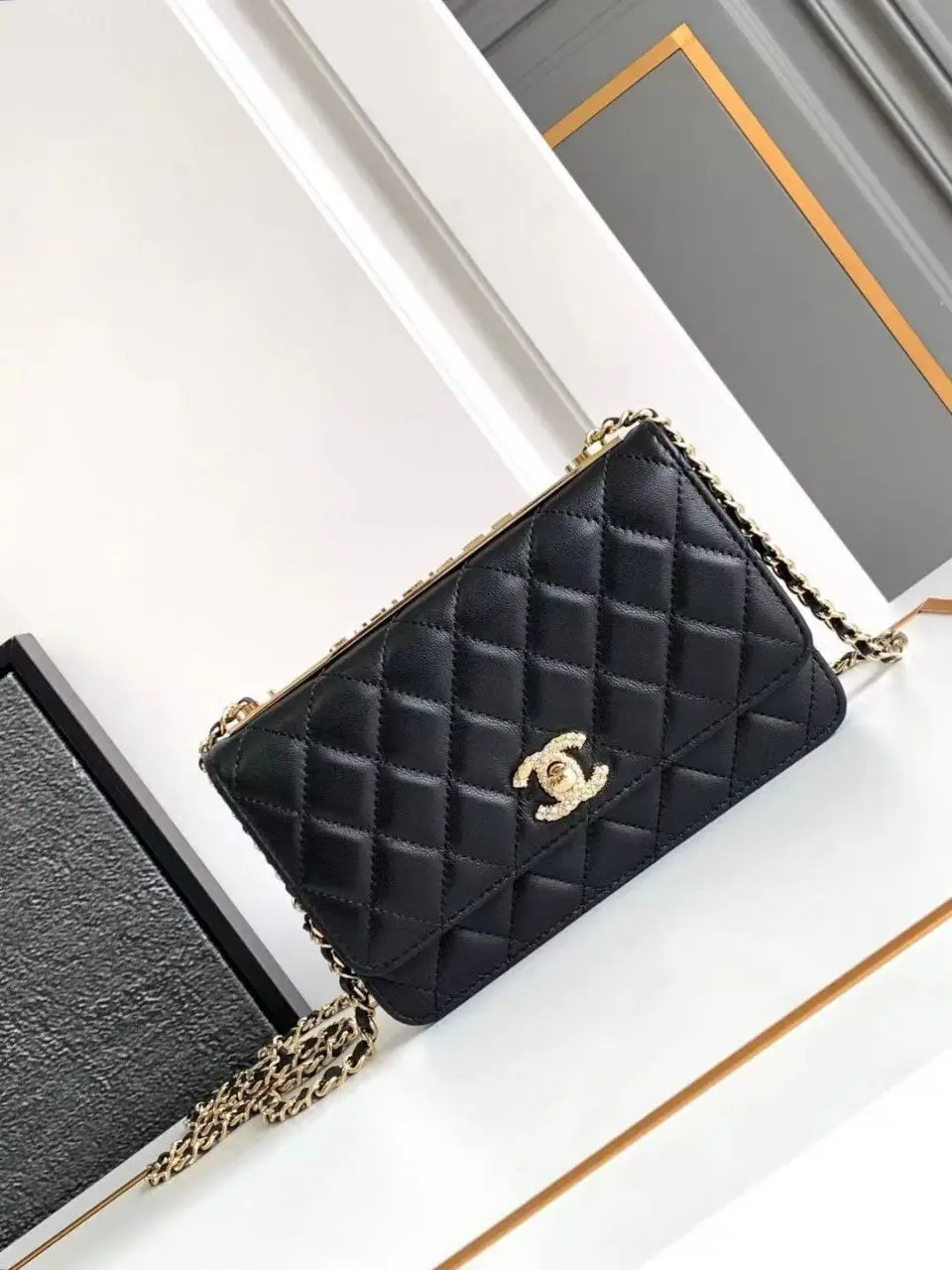Design Black Quilted Leather Trendy CC Wallet On Chain – Dubai Fashion LUX