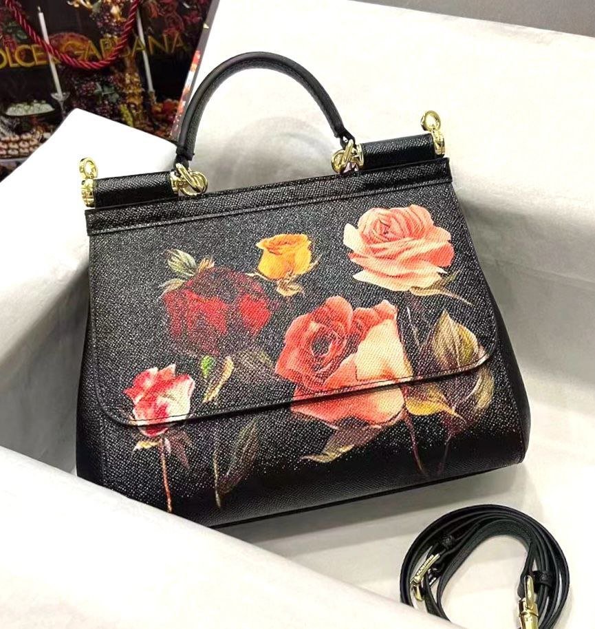 Design Dauphine Roses Print Small Miss Sicily Satchel Black – Dubai Fashion LUX