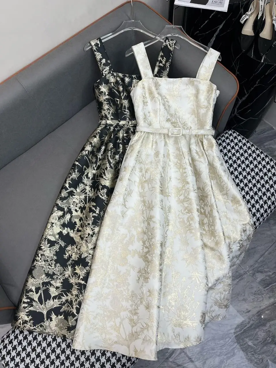 Embody the timeless elegance and romantic spirit of the House of DIOR Floral Print Midi Dress Meticulously crafted from the finest luxe crepe fabric, this dress drapes beautifully to create a silhouette that is both feminine and sophisticated. The intricate, bespoke floral print—inspired by the lush gardens of the French Riviera—blooms across the canvas of the dress in a palette of soft blush, delicate greens, and warm terracotta, ensuring you are a vision of modern grace.