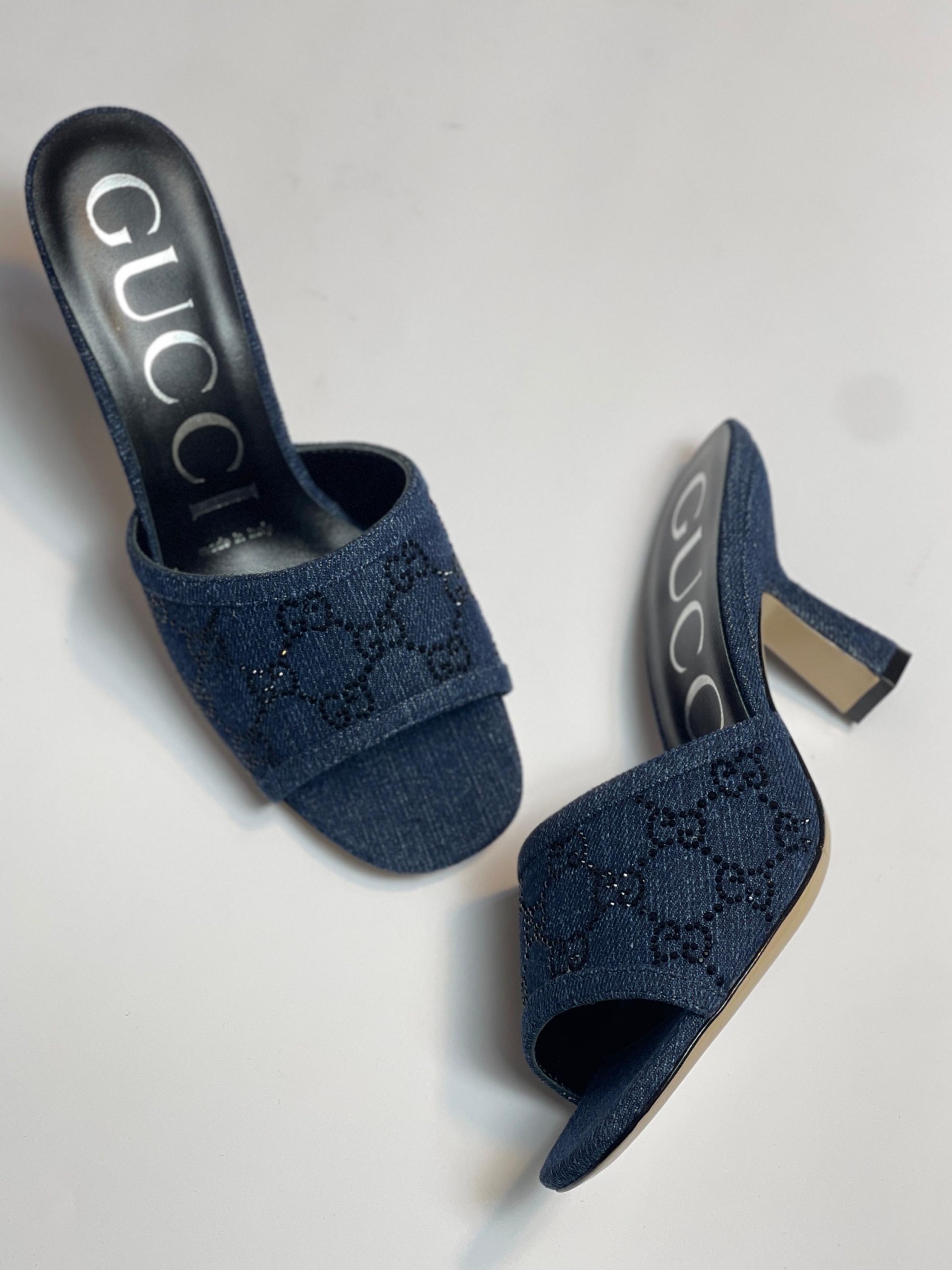 Where iconic heritage meets audacious contemporary glamour, the GUCCI Crystal Denim Mules are born. This is not merely a shoe; it is a statement piece that redefines casual luxury. We have taken the quintessential comfort of a mule and the timeless appeal of denim, then elevated them to an art form.