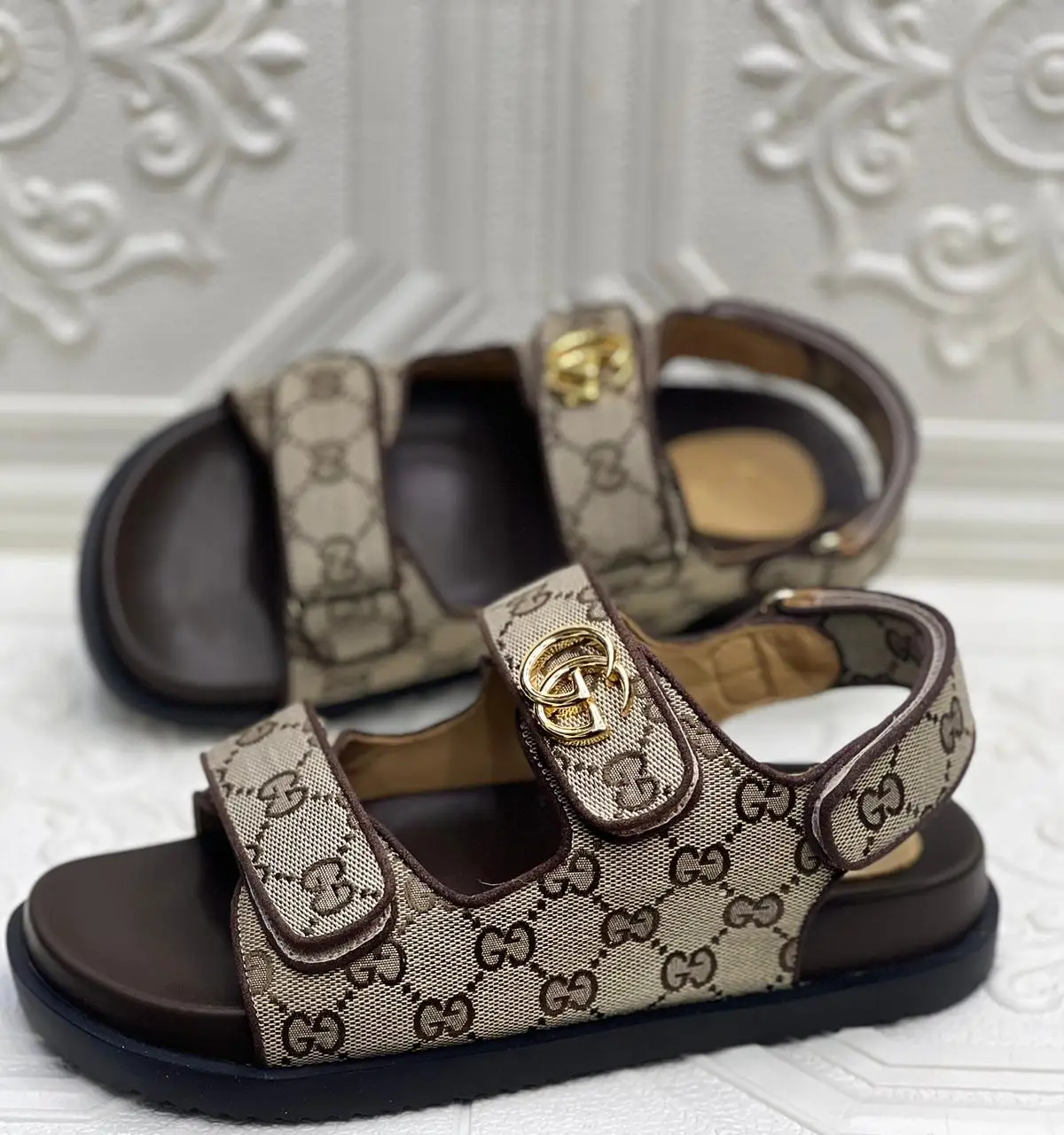 Embody the pinnacle of Italian luxury and impeccable craftsmanship with the GUCCI GG Logo Leather Sandals. Meticulously crafted to super master quality standards, these sandals are more than an accessory; they are a statement of sophisticated elegance.