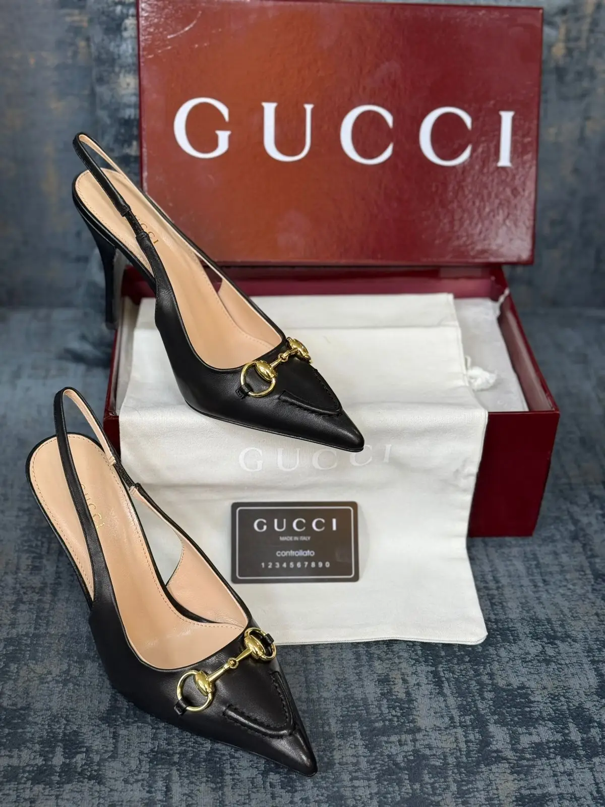 The iconic GUCCI Horsebit Slingback Pump, crafted in super master quality. Featuring the signature gold Horsebit detail and an elegant slingback strap, this timeless pump offers sophisticated style and enduring comfort for the discerning woman.