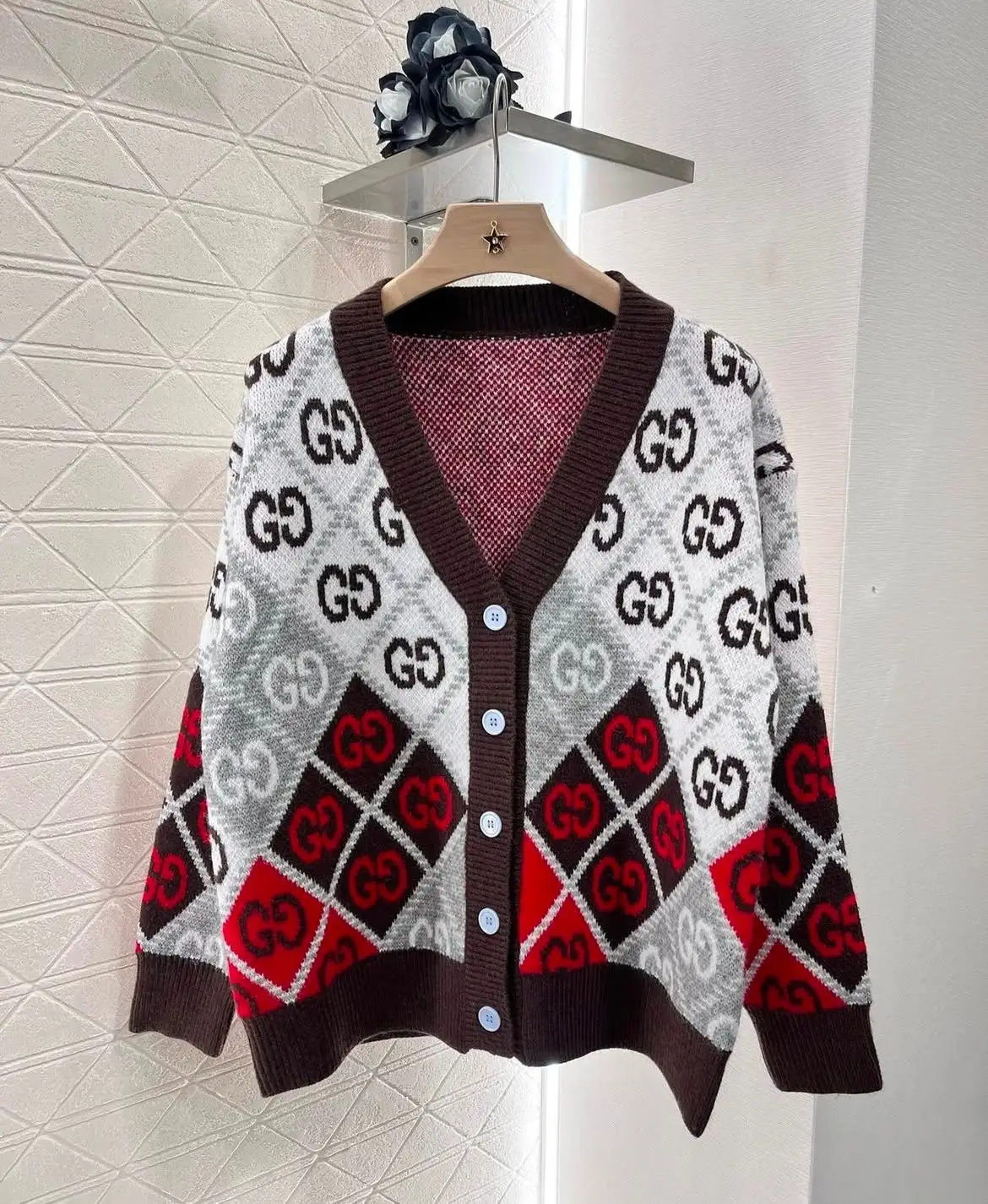 Embody the house’s rich heritage with the GUCCI Jacquard Interlocking G Cardigan, a masterpiece of craftsmanship and iconic design. Meticulously crafted in super master quality, this cardigan is an investment in timeless luxury. The intricate jacquard weave, a signature Gucci technique, showcases the iconic interlocking G motif and heritage patterns, creating a subtle yet unmistakable statement.