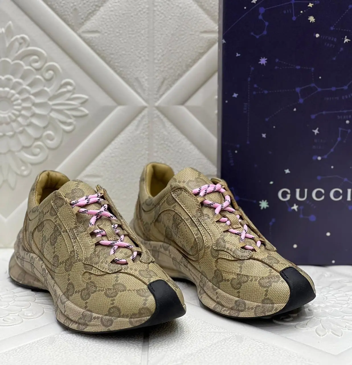 Embody the zenith of Italian luxury sportswear with the GUCCI Run GG Supreme Canvas Sneaker. Meticulously crafted for the discerning individual who values both heritage and contemporary edge, this sneaker is a masterclass in design and comfort.