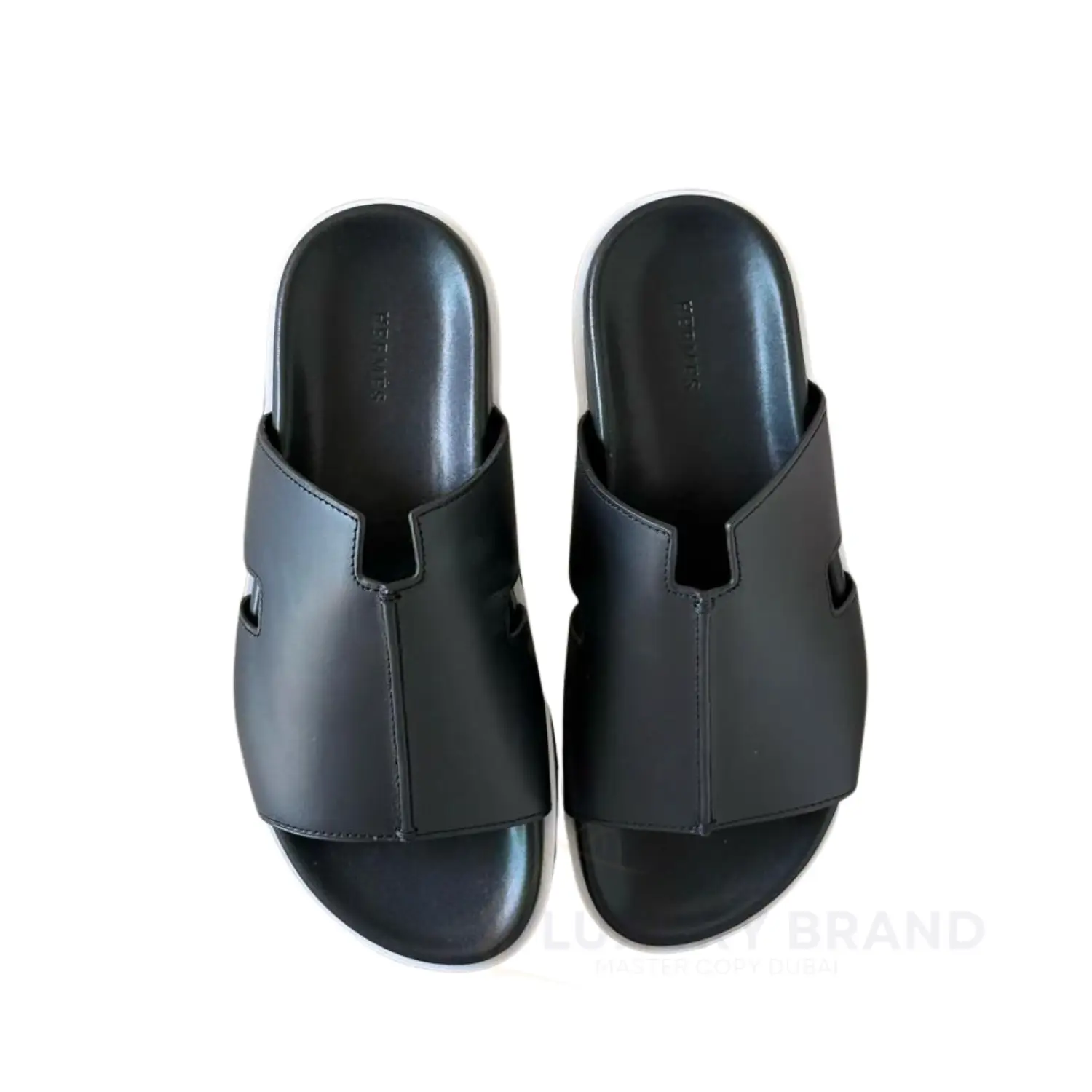 Step into unparalleled sophistication with the HERMES Baron Men’s Luxury Black Leather Slippers. Crafted from the finest premium leather, these slippers exude timeless elegance and superior comfort. The sleek black design, adorned with the iconic HERMES branding, makes them a perfect choice for discerning gentlemen who appreciate refined luxury.