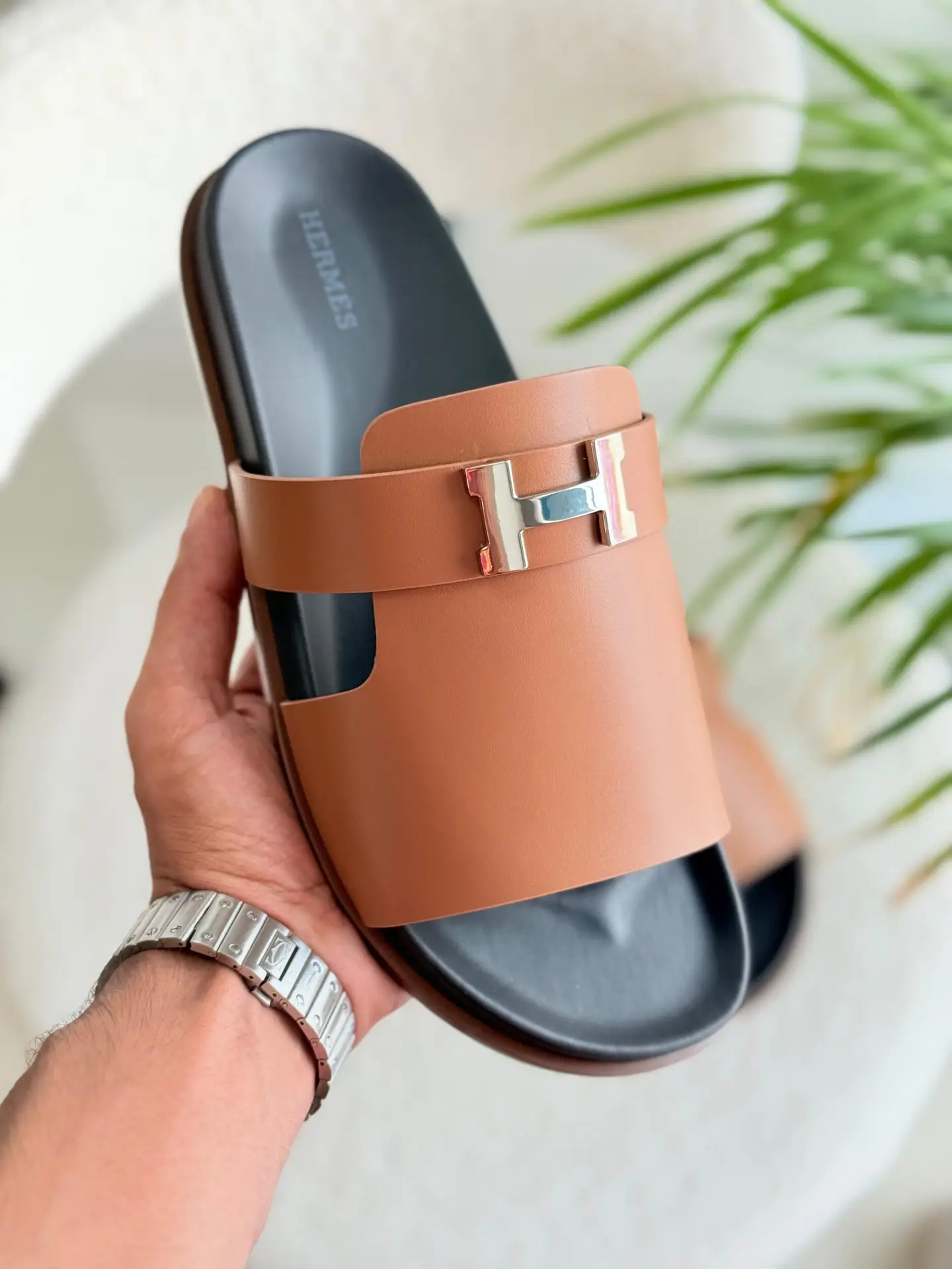 Step into luxury with the HERMES Brown Premium Gabriel Flip-Flop, a masterpiece of comfort and style. Crafted with super master quality materials, this flip-flop features a premium brown leather upper, a soft cushioned footbed, and a durable rubber sole for superior traction. The elegant HERMES branding adds a touch of sophistication, making it perfect for casual outings, beach days, or relaxed strolls. Designed for all-day comfort and timeless appeal, these flip-flops are a must-have for those who appreciate luxury and durability.