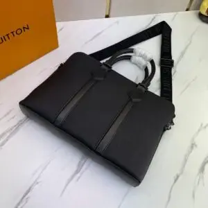 Elevate your professional style with the Louis Vuitton Black Aerogram Leather Briefcase Bag—a masterpiece of luxury and functionality. Crafted from premium black leather, this briefcase exudes sophistication with its sleek, structured silhouette and the iconic LV monogram detailing. The spacious interior features multiple compartments, ensuring optimal organization for your essentials, while the top zip closure provides security. The polished hardware and refined stitching reflect Louis Vuitton’s commitment to excellence. Whether for business or travel, this Super Master Quality briefcase is the ultimate statement of elegance and prestige.