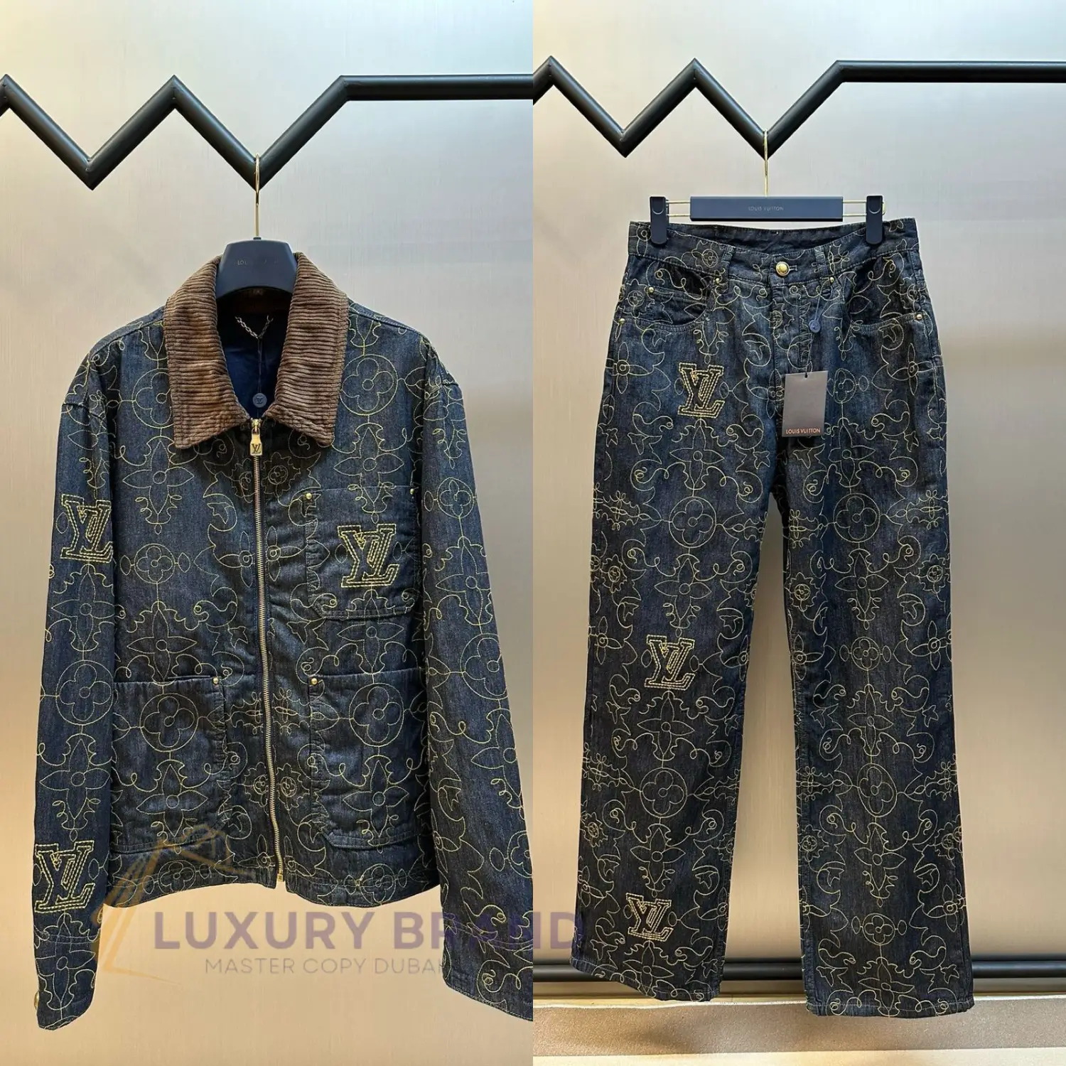 Embrace the pinnacle of luxury workwear with this exceptional Louis Vuitton Embroidered Denim Workwear. Meticulously crafted from premium, heavyweight selvedge denim, this garment is designed for the connoisseur who appreciates both heritage and high fashion. Each piece is a testament to superior artistry, featuring the iconic Louis Vuitton monogram and motifs intricately embroidered with impeccable precision, offering a subtle yet unmistakable statement of elegance.