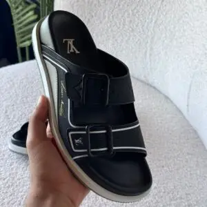 Elevate your summer style with the LOUIS VUITTON Trainer Mules Sandals—a perfect fusion of luxury and comfort. Crafted with premium materials and iconic LV detailing, these sandals feature a sleek mule design with a cushioned footbed for all-day ease. The bold Trainer silhouette adds a sporty-chic edge, while the signature monogram accents ensure timeless sophistication. Ideal for casual outings or elevated leisure, these sandals are a must-have for fashion-forward individuals.