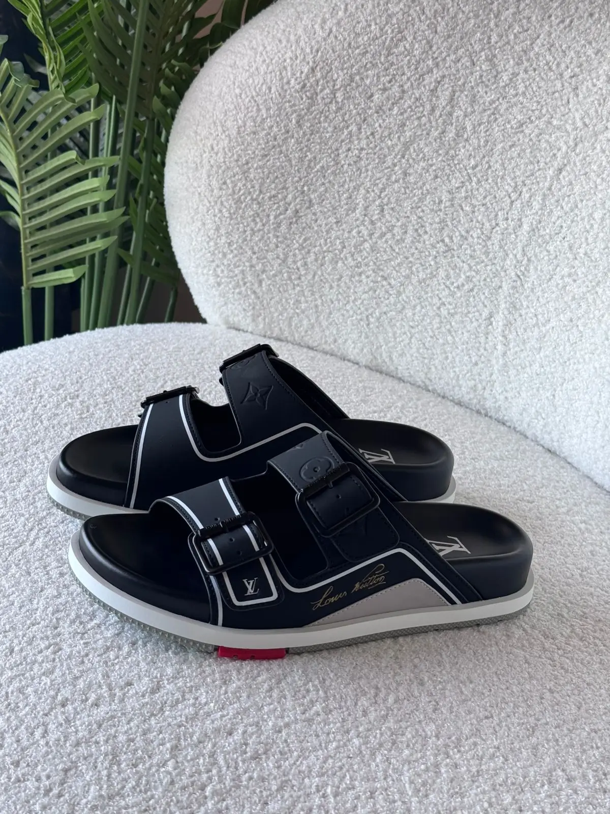 Elevate your summer style with the LOUIS VUITTON Trainer Mules Sandals—a perfect fusion of luxury and comfort. Crafted with premium materials and iconic LV detailing, these sandals feature a sleek mule design with a cushioned footbed for all-day ease. The bold Trainer silhouette adds a sporty-chic edge, while the signature monogram accents ensure timeless sophistication. Ideal for casual outings or elevated leisure, these sandals are a must-have for fashion-forward individuals.