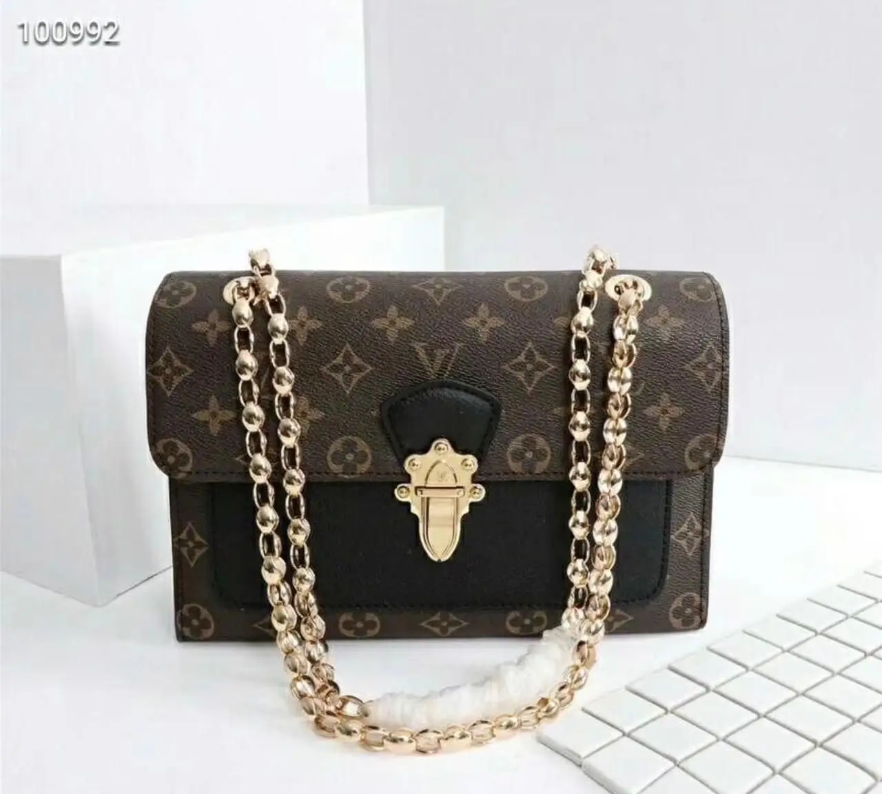 Every detail has been masterfully replicated to mirror the original’s iconic design. From the signature monogram canvas to the rich, gleaming gold-tone hardware, no element is overlooked. The versatile chain strap allows you to wear it as an elegant shoulder bag for a classic look or as a chic crossbody for hands-free convenience.