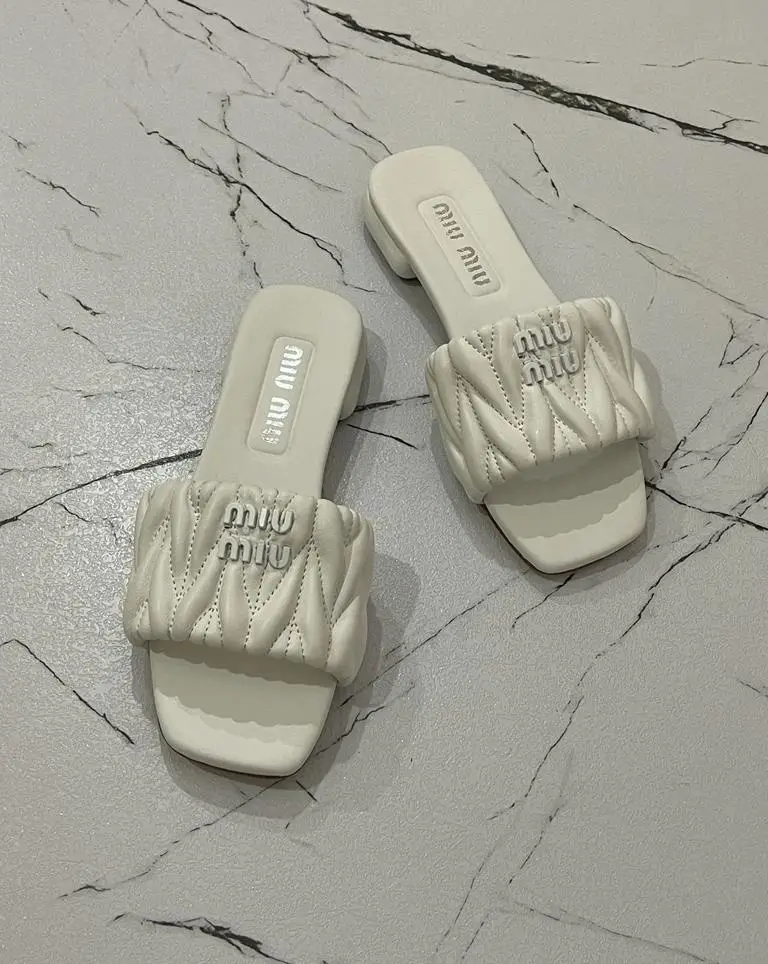 Step into a world where comfort is synonymous with high fashion. The MIU MIU Matelassé Leather Slide Slippers are not merely footwear; they are an emblem of refined taste and an commitment to exquisite living. Designed for the connoisseur of luxury who demands perfection in every detail, even within the privacy of their home.
