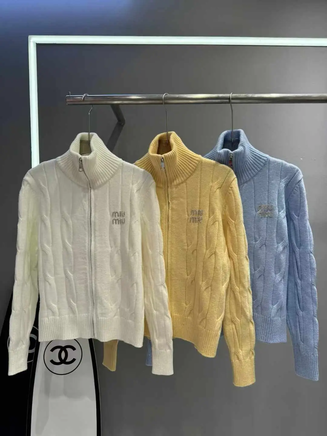 Step into the world of MIU MIU Sweaters & Cardigans where traditional knitwear is reimagined through a lens of intellectual whimsy and bold sophistication. Our collection of sweaters and cardigans transcends the ordinary, offering pieces that are not merely garments, but wearable art. Each design is a conversation between classic Italian craftsmanship and the brand’s signature provocative charm.