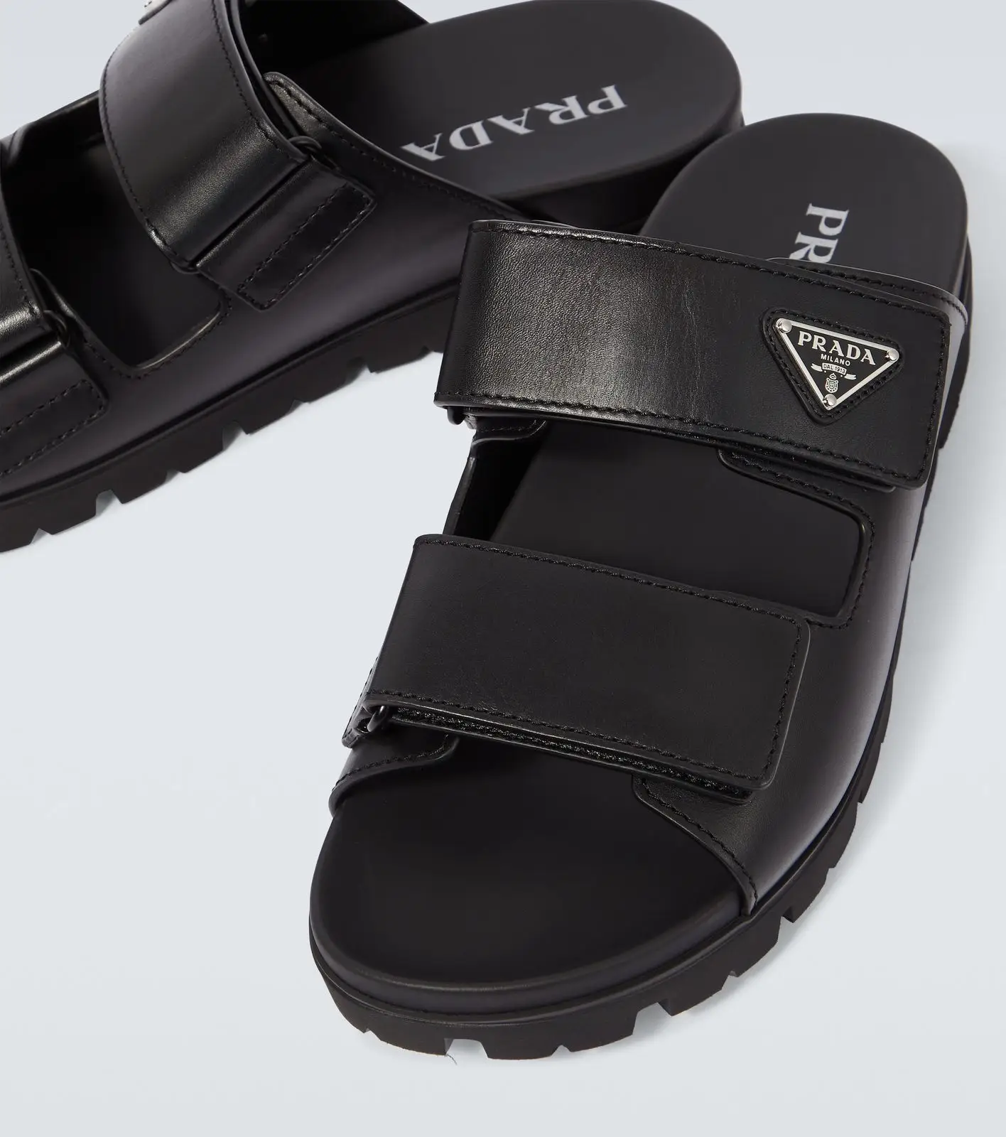 PRADA Black Leather Strap Sandals – premium craftsmanship, adjustable straps, and cushioned comfort for a luxurious summer look.