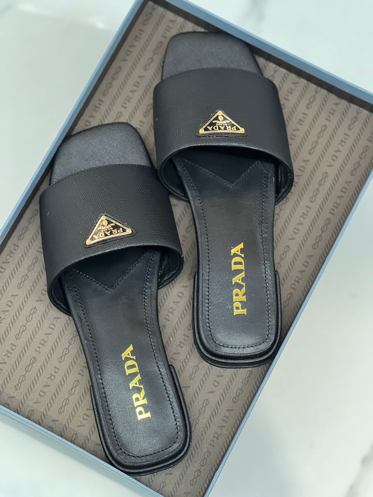 Distinctive PRADA Logo for authentic designer appeal.