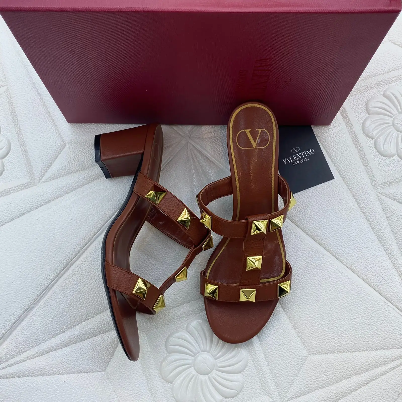 Embody the pinnacle of Italian luxury with theValentino Rockstud Leather Block Heel Sandals Meticulously crafted from the finest supple leather, these sandals are an instant icon, blending timeless elegance with the brand’s signature rock-edge attitude.
